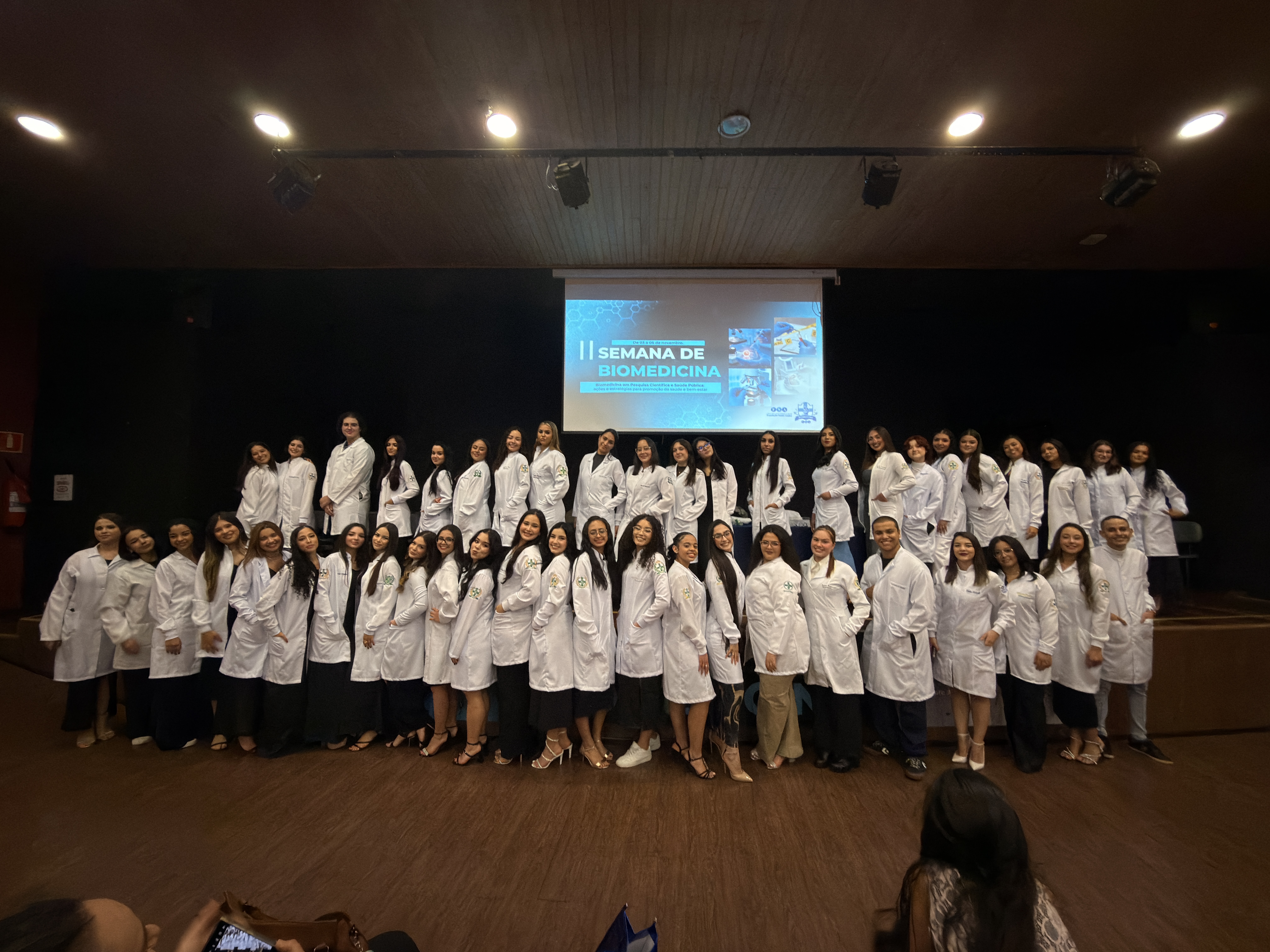 A entrada simbólica no universo profissional foi um dos momentos mais emocionantes. A cerimônia do jaleco reforçou o compromisso ético e a responsabilidade do biomédico com a ciência e com as pessoas.