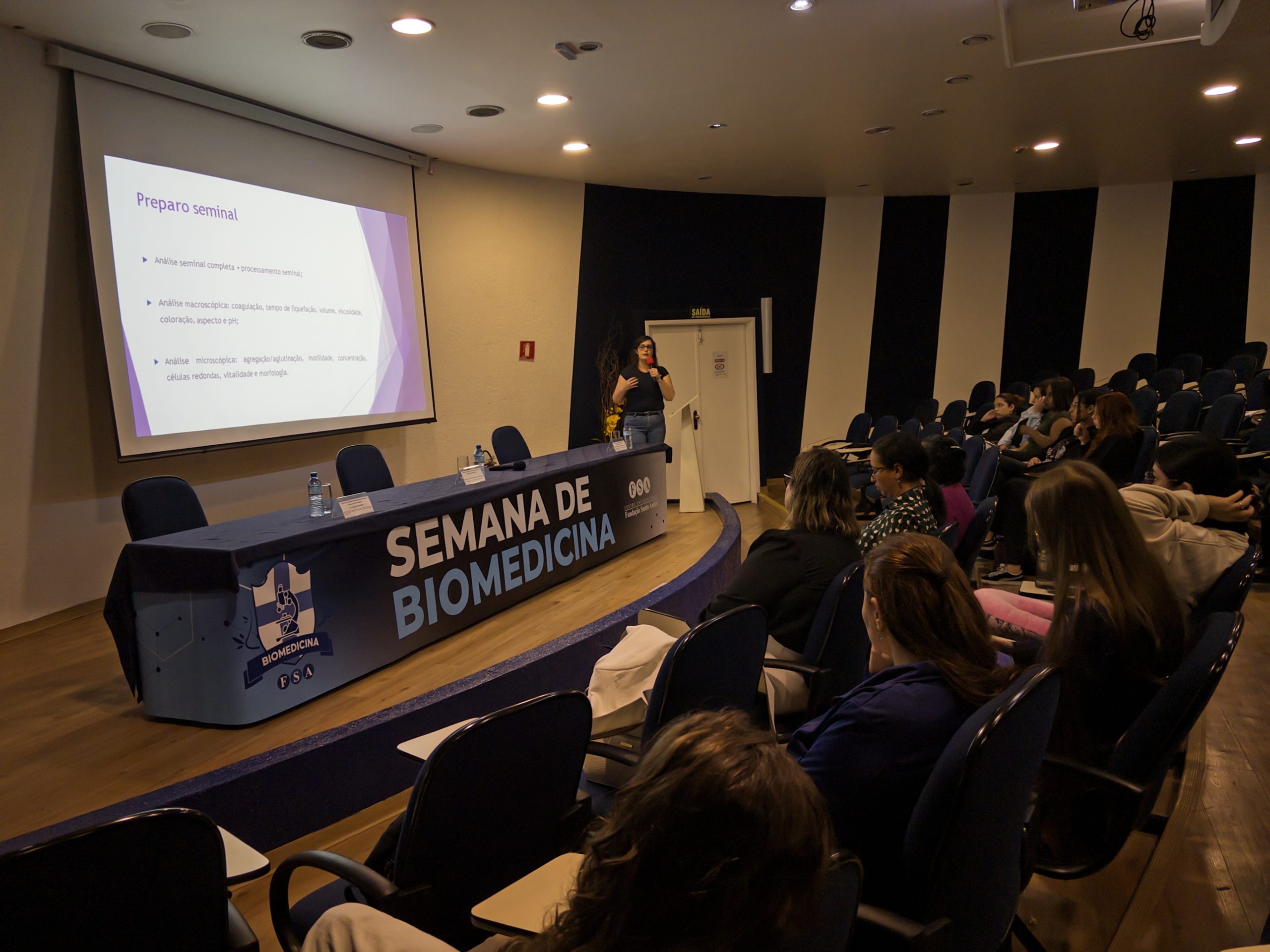 Uma das palestras trouxe um olhar técnico sobre a atuação da biomedicina nas áreas forenses. Foi ressaltada a importância de desenvolver uma visão laboratorial ampla: conhecer aparelhos, procedimentos e como eles se conectam ao trabalho pericial.