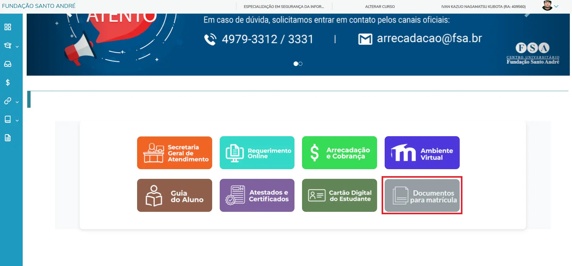 Para o envio dos documentos, será enviado e-mail do remetente “FUNDAÇÃO SANTO ANDRE” com o assunto “Seja bem-vindo(a) à Fundação Santo André” para acesso ao PORTAL do ALUNO.
